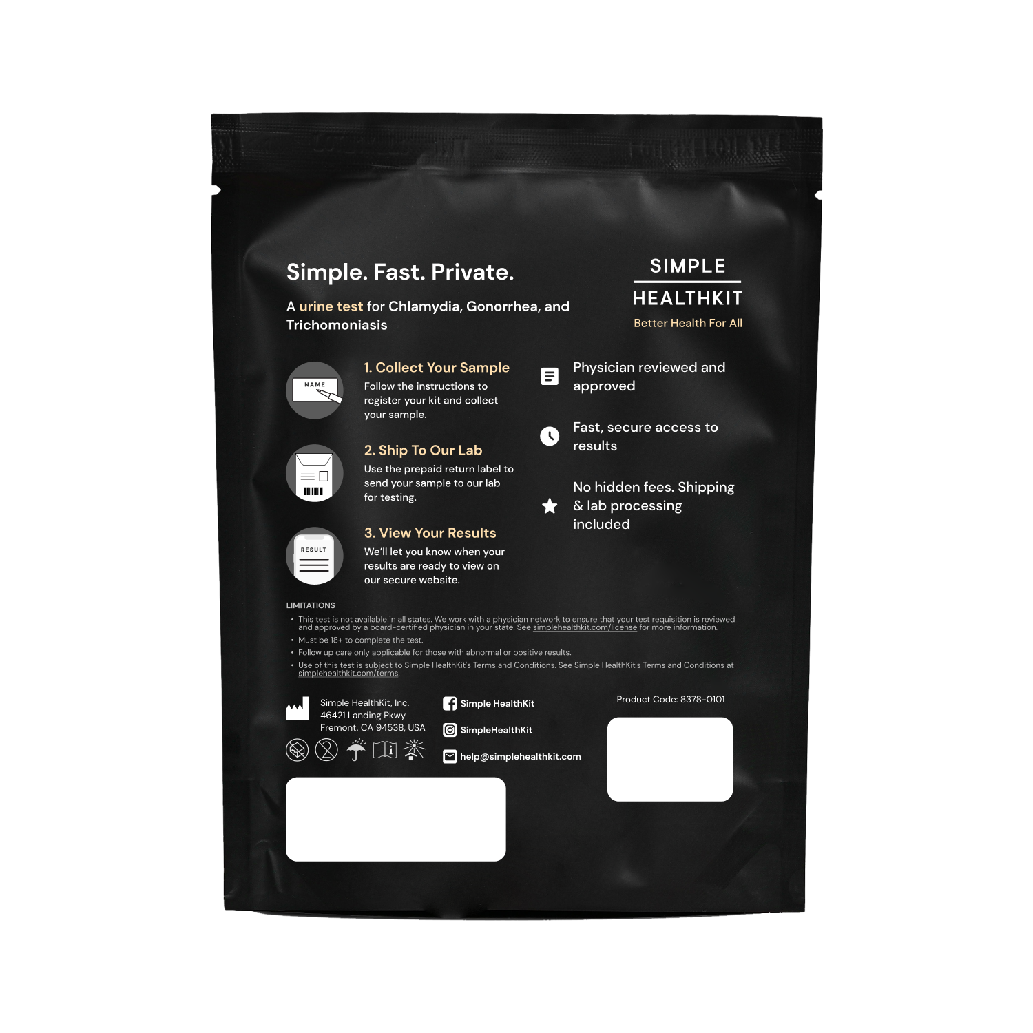 - At-home STD test with comprehensive STI testing: An easy-to-use urine test with simple, fast, and private results. Simple HealthKit screens for three common and curable STDs: Chlamydia, Gonorrhea, and Trichomoniasis