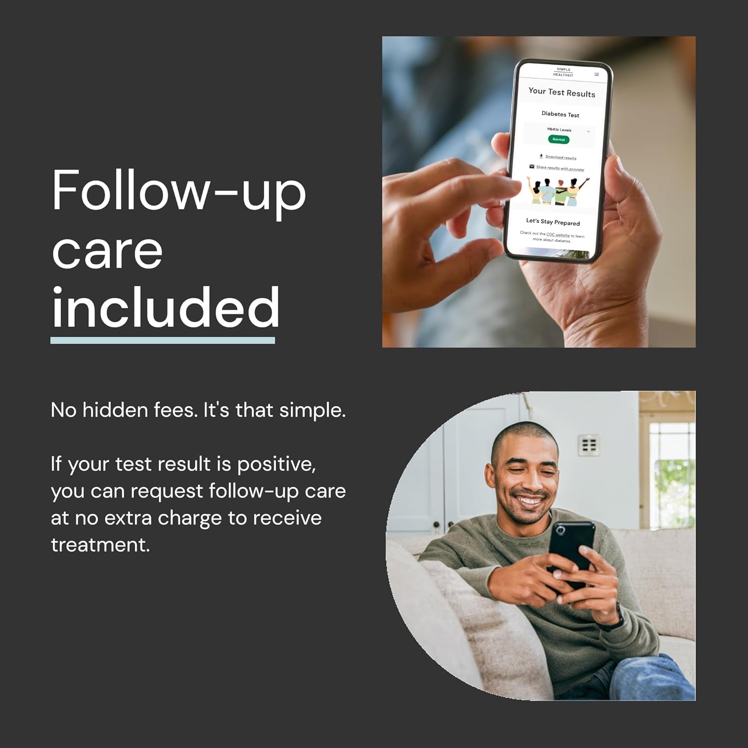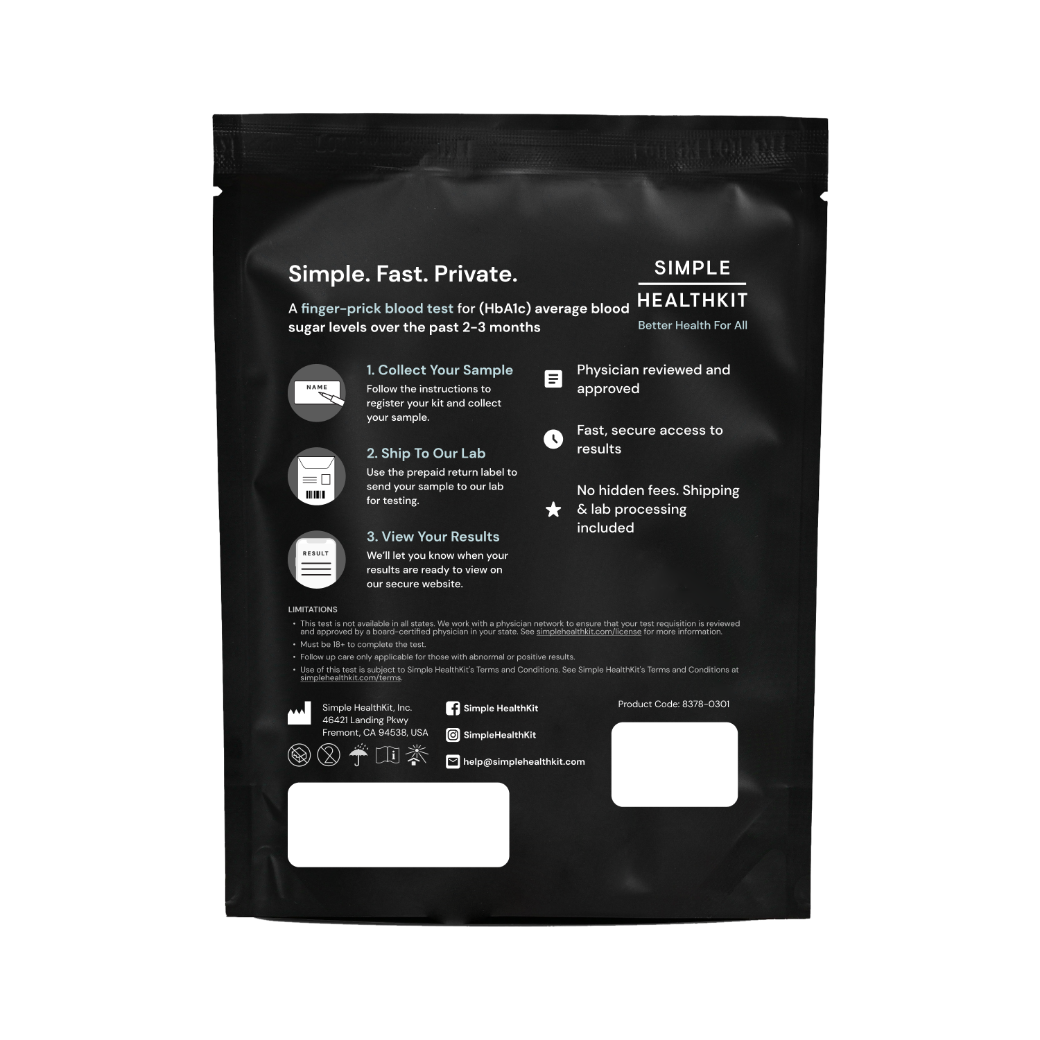 Simple HealthKit's at-home Diabetes Test allows you to self-collect a blood sample from the privacy of your own home and send it to our lab to measure your HbA1c levels. Once the sample is received by our lab, your online results are typically available within 24 - 48 hours. Lab processing and follow-up care for abnormal results are included with your test purchase. No hidden fees. It’s that simple.