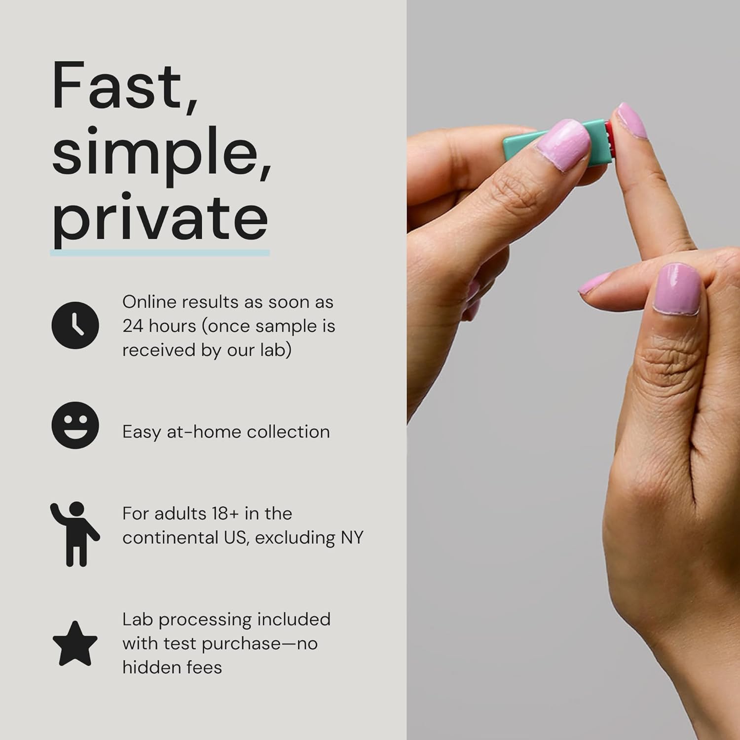 • Fast, Simple, Private: Collect a blood sample from the comfort of your home and send it to our lab for testing. Once the sample is received by our lab, your online results are typically available within 24 - 48 hours.